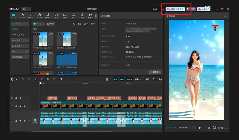 ※캡컷 무료체험 신청 후 프로그램을 종료 후 꼭 다시 실행하세요. 그래야 무료체험이 반영됩니다.