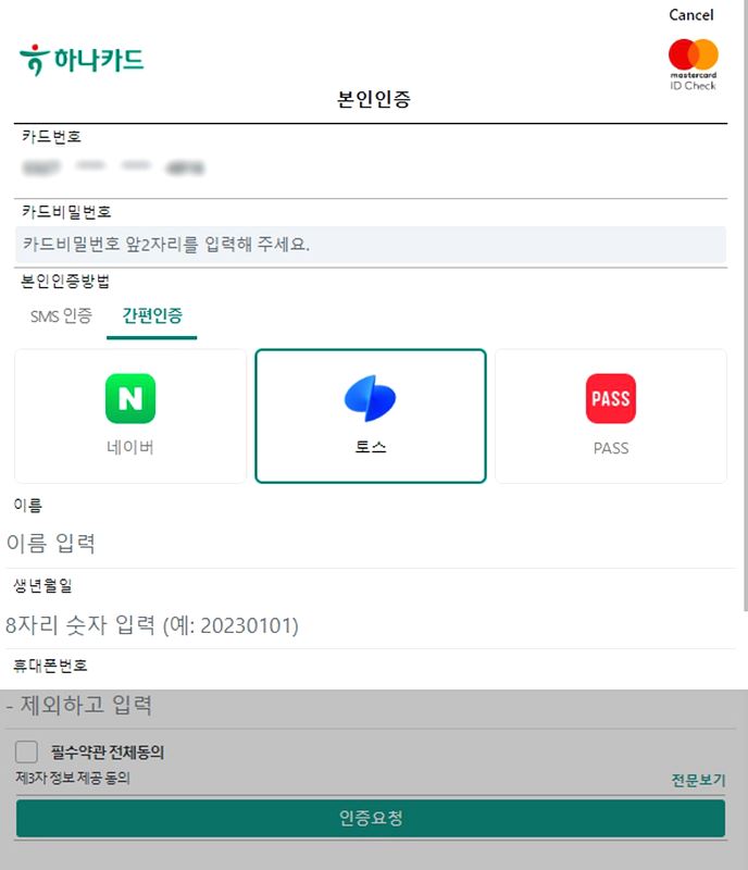 6단계: 본인 인증: 네이버/토스/PASS/SMS로 인증.