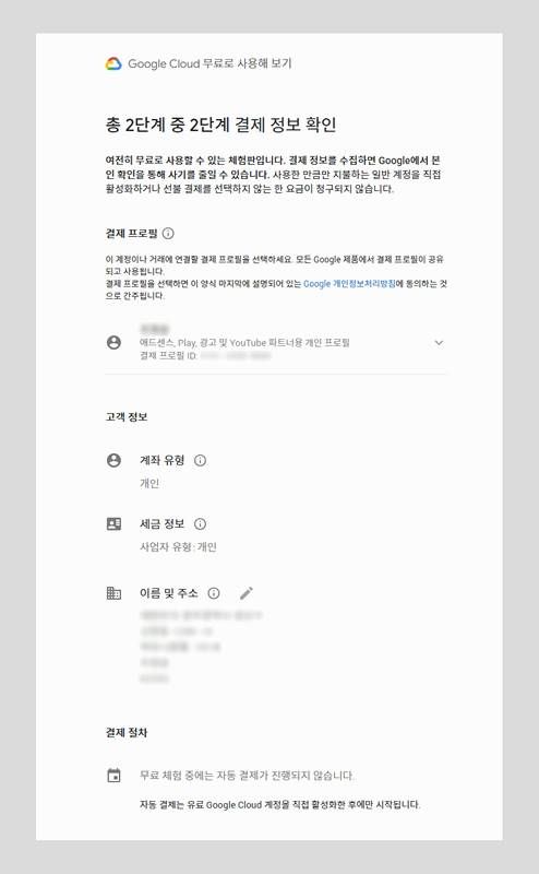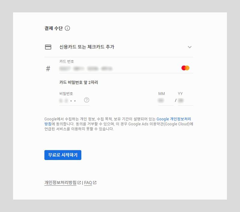 다음으로 결제 정보 입력 단계가 나옵니다. 카드 정보를 등록해야 하지만, 이는 무료 체험 기간 동안 실제 결제가 이루어지지 않으니 걱정하지 않으셔도 됩니다.