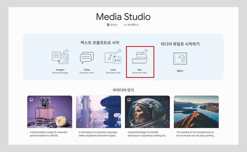 현재 Media Studio에서 외부 이미지 지원이 가능합니다. 하지만 Veo2로 전환되니 이점 참고하시고 이미지를 업로드하고 텍스트 프롬프트와 활용해 멋진 영상을 만들어보세요.